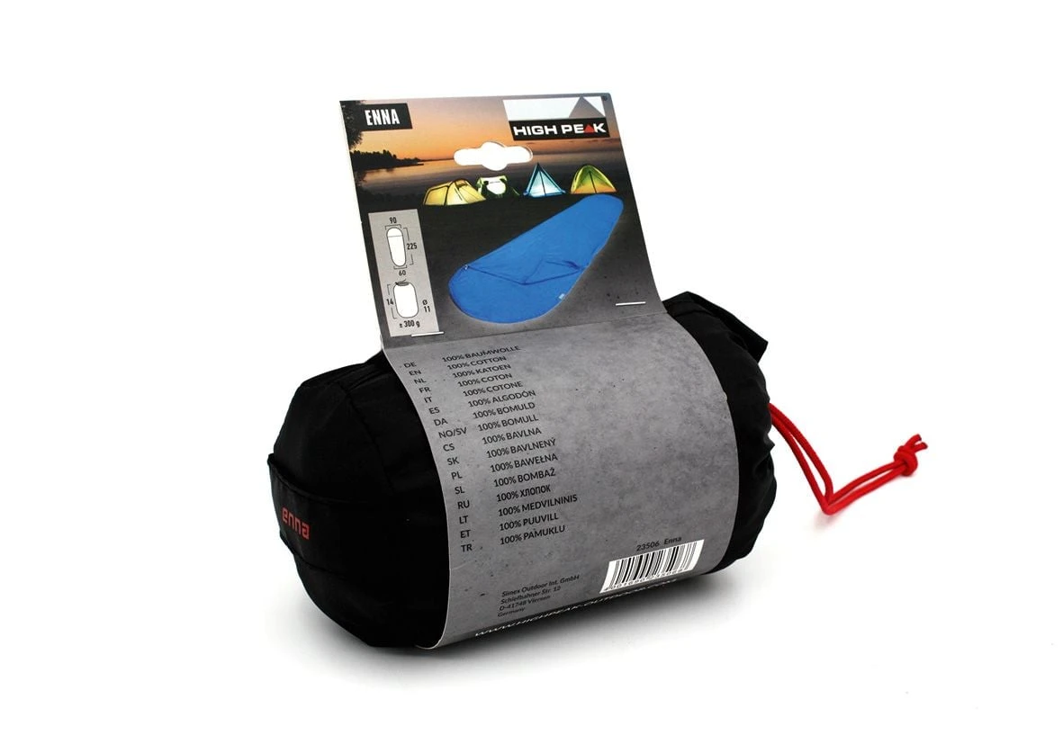 High Peak Enna, slaapzakinlaat, mummieslaapzak, blauw, kleine pakmaat, ultralicht, 100% katoen, ademend, huidvriendelijk, 225x90cm, 305g,