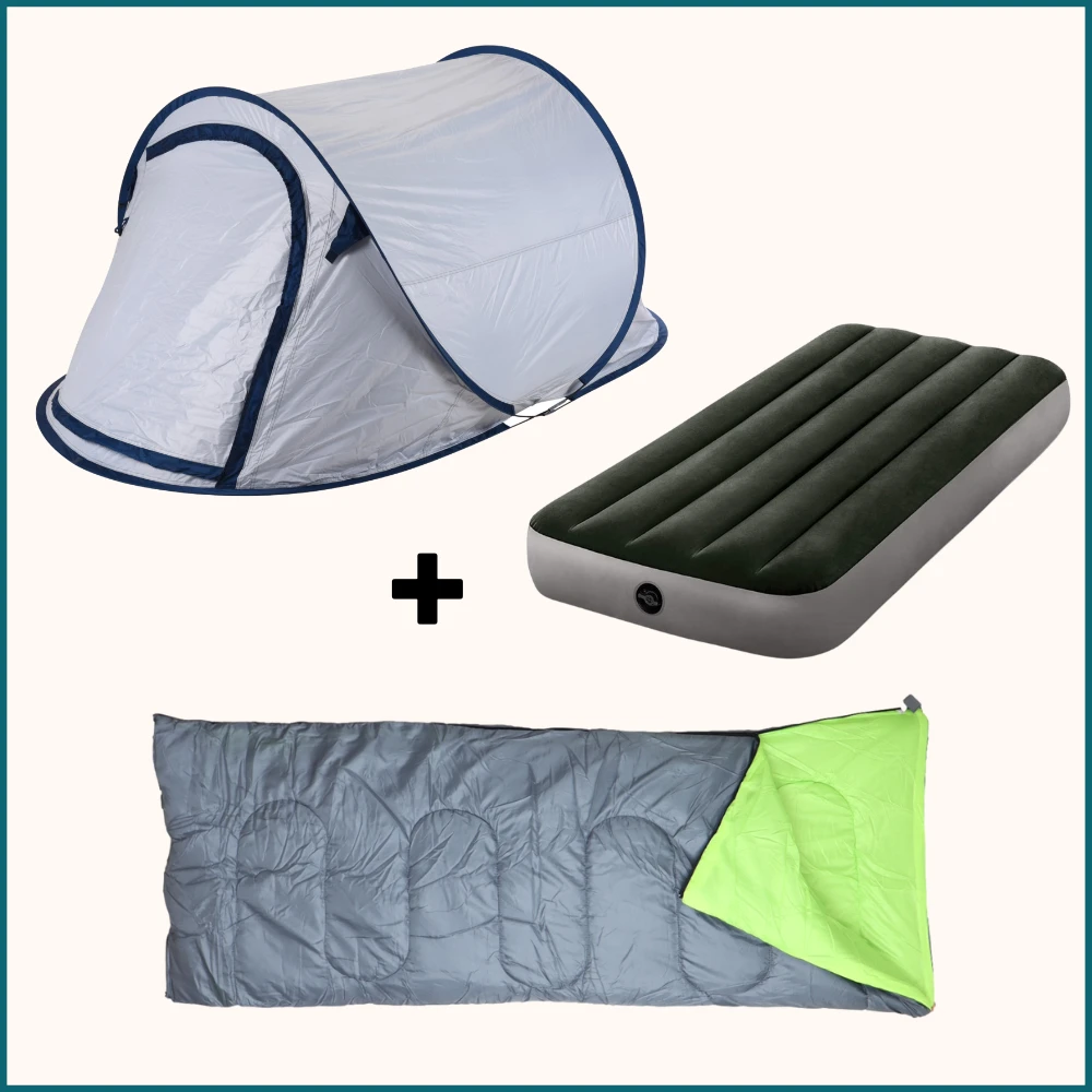 -Compleet Pakket van pop-up tent met haringen, slaapzak en luchtbed