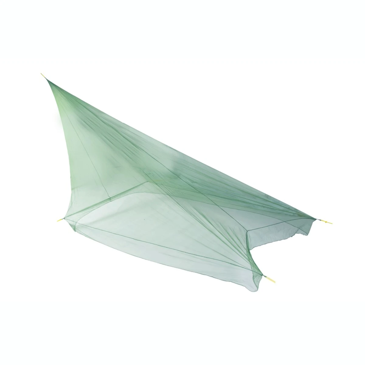 DeHighlander Trekker Mosquito Net hangt in een kegelvorm of wigvorm over je matras/bed. Het net is voorbehandeld met Permethrin om het nog minder aantrekkelijk te maken voor bijtende insecten om bij u in de buurt te komen. Het net is gemaakt van ultra fijn gaas en met 400 gaten per vierkante inch een top muskietennet.