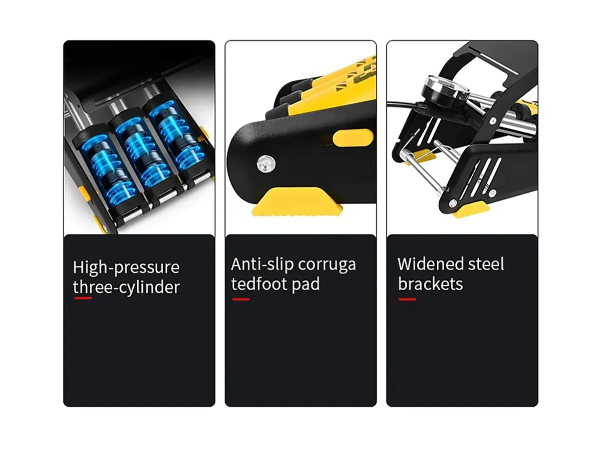 DeTireboost TB3 beschikt over drie cilinders voor een extra krachtige luchttoevoer, waardoor banden sneller worden opgepompt dan met conventionele voetpompen. Het systeem is ontworpen voor moeiteloos gebruik en kan oppompen tot 11 BAR.