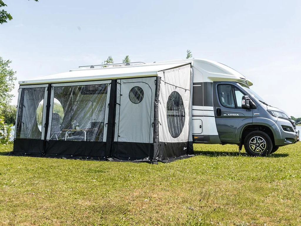 De Travellife Scala voorwand deur universeel 1,10 m is geschikt voor o.a. Thule, Fiamma en Dometic luifels. Combineer de deur met de voor- en zijwanden en jij creëert in een handomdraai een complete voortent. Het doek is gemaakt van dubbel gecoate polyester stof en is daardoor water- en uv-bestendig. De voorwand deur is voorzien van een rond deurelement met rits. Rol de deur zijwaarts op om hem te bevestigen en als in- en uitgang te gebruiken.