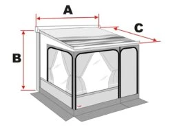 Wil je graag een beschut plekje creëren voor jouw kampeervoertuig? Dan is de Scala zijwand de perfecte toevoeging! Het doek is gemaakt van dubbel gecoate polyester stof en daardoor water- en uv-bestendig. Deze zijwand is geschikt voor Thule, Fiamma en Dometic cassetteluifels met een uitval van 2,50 meter. Hij past op voertuigen met een luifel aanbouwhoogte van 2,65 tot 2,84 meter. Dit is de afstand van de onderkant van de gesloten cassette tot aan de grond. De zijwand beschikt over ronde ramen met meegeleverde blindering. Door middel van magneten kun je de blindering bevestigen.