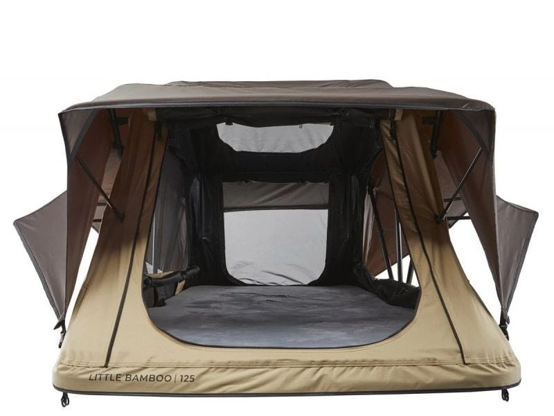 Dankzij zijn gewicht van slechts 44,5 kg past de Little Bamboo op nagenoeg elk voertuig. Kunnen er dakdragers op je auto gemonteerd worden? Dan kan de daktent zonder problemen gemonteerd worden. Deze softcover daktent is in een handomdraai in en uit te klappen. Met de telescopische ladder die tevens de daktent van voldoende ondersteuning voorziet, kun je de tent eenvoudig betreden. Het comfortabele matras en de vele ventilatieopeningen zorgen voor een comfortabele kampeerervaring.
