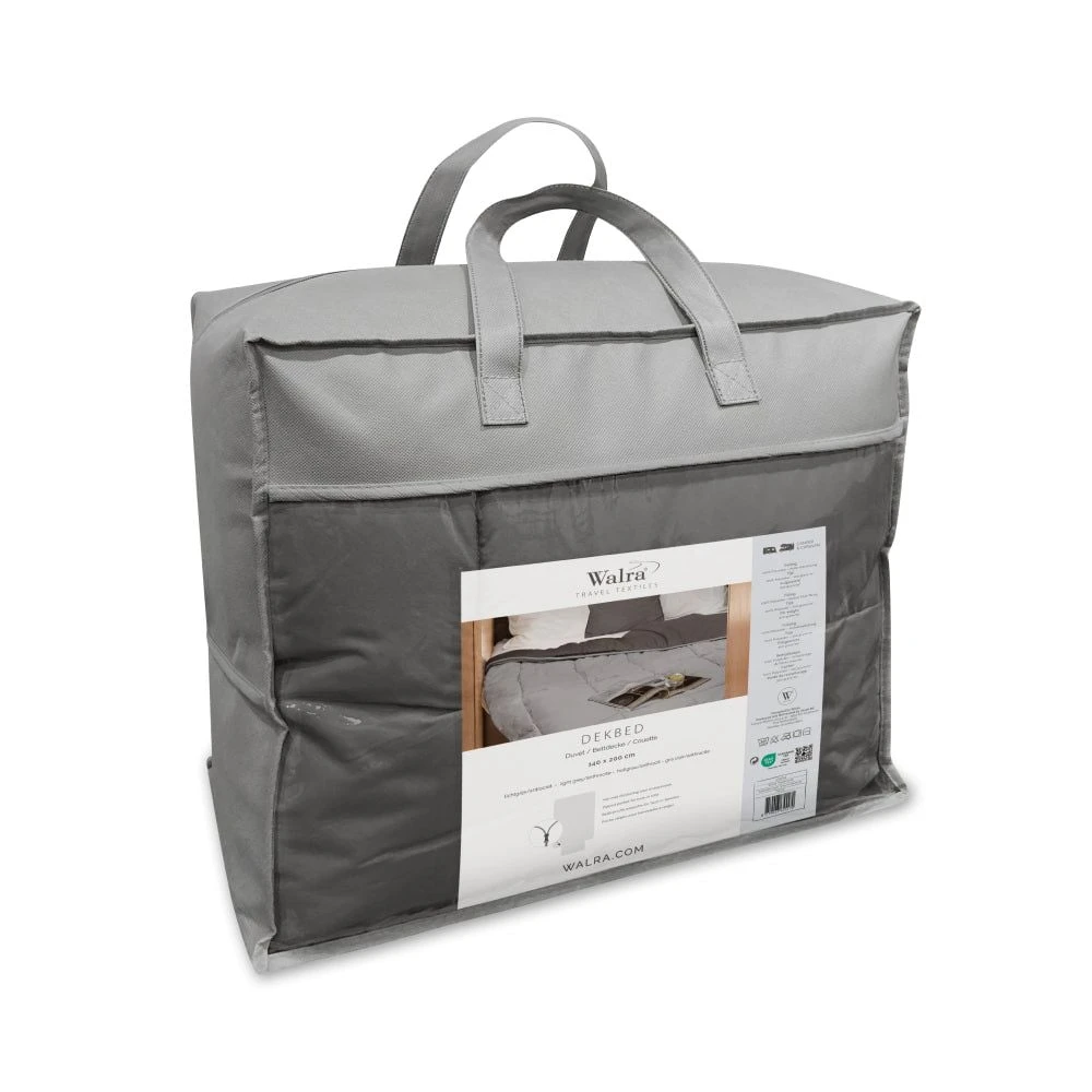 Ervaar ultiem comfort tijdens uw reizen met ons 4-seizoenen dekbed, perfect ontworpen voor gebruik in campers of caravans. Dit dekbed is voorzien van een vaste overtrek, waardoor het tijdens uw vakantie moeiteloos in de wasmachine kan worden gewassen. Daarnaast beschikt het over een handige opbergtas en een instopstrook met verborgen ritsen voor extra gemak.