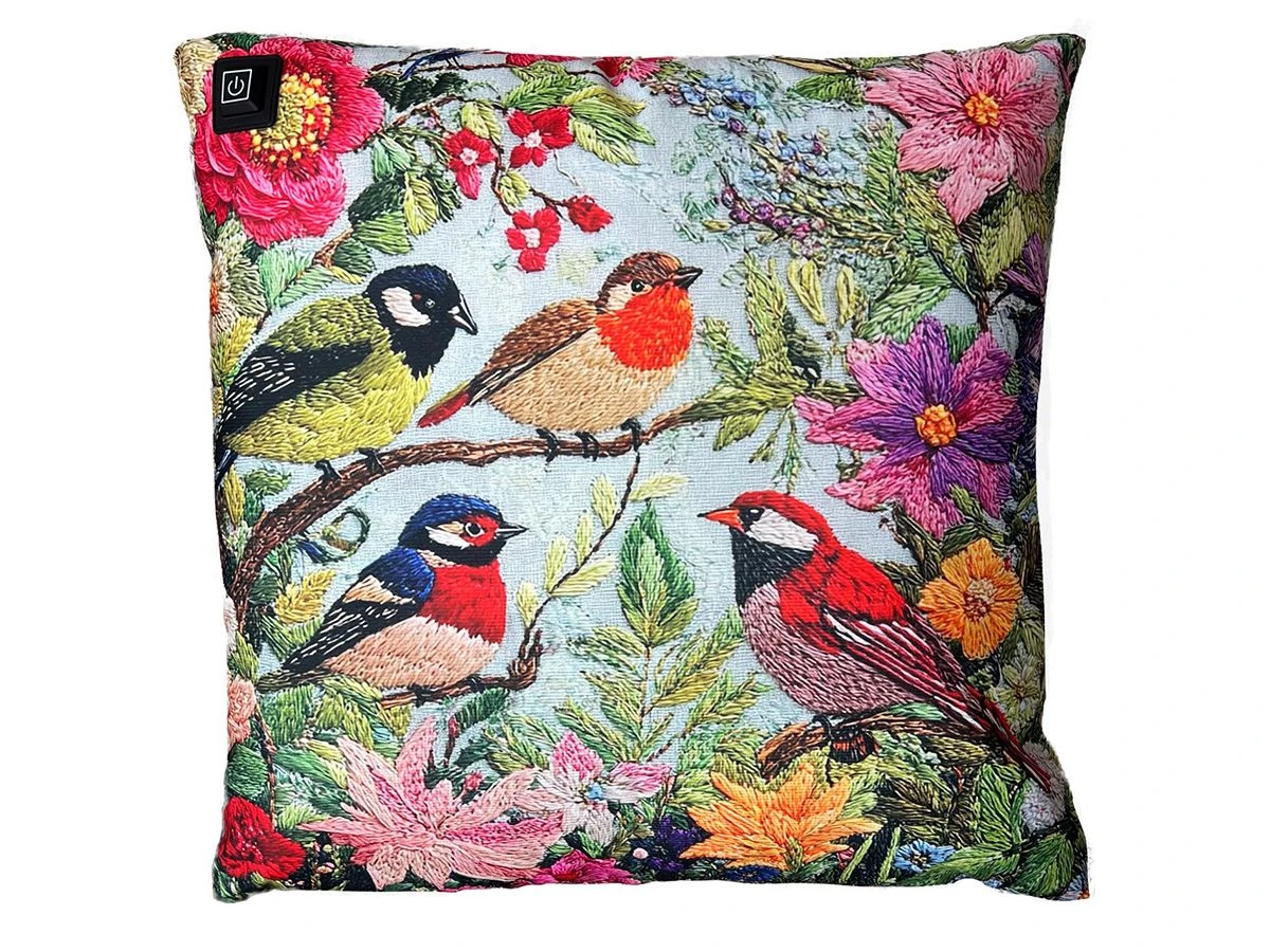 De kussenhoes en knop zijn spatwaterbestendig en kunnen met een vochtige doek gewassen worden.